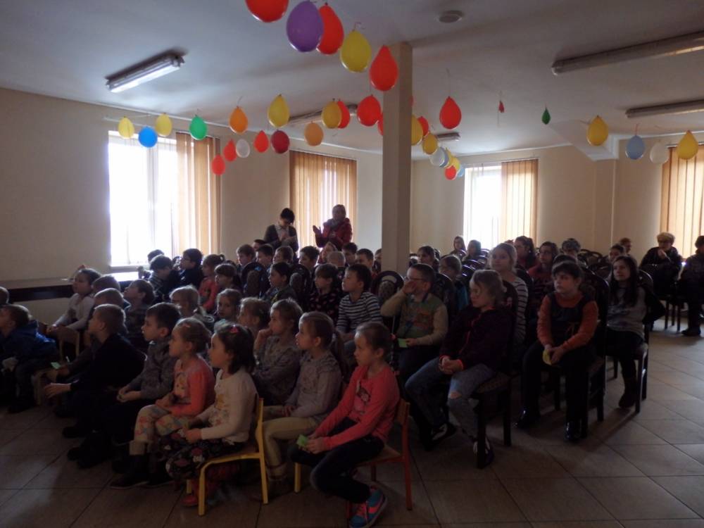 18 marca sala kominkowa Biblioteki w Michrowie zamieniła się w salę teatralną, a nasze dzieci w zawodowych artystów, bowiem 3 razy w ciągu dnia występowały przed publicznością ze szkoły w Karolewie, dla szkoły w Jurkach i dla przedszkolaków z naszej gminy. Dzień bardzo trudny i dla mnie jako organizatorki, ale i dla młodych aktorów, którzy, mając czas tylko na mały łyk herbaty, jednych gości żegnali, drugich witali, rozprowadzali bilety, z których cegiełki zasilą późniejsze wyjazdy objazdowego teatrzyku „Okruszek” i „Kruszyna”.