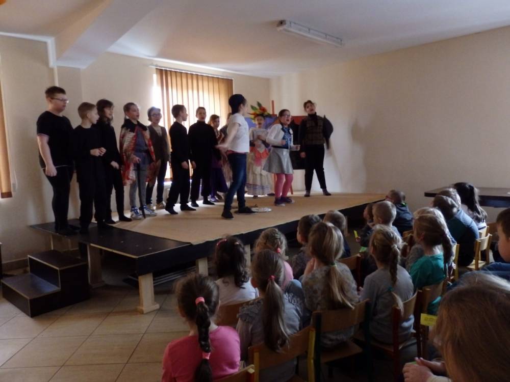 Kiedy zmęczeni podsumowaliśmy dzień, odczuliśmy i radość, i dumę, że przedsięwzięcie – w naszym mniemaniu – się udało. Podzielę się też z Państwem refleksjami – i chyba moi aktorzy nie będą mieli mi tego za złe – ale przyjemność sprawiły dzieciom występy przed najmłodszymi, bo żywo reagowali na to, co zobaczyli na scenie, bo występujący mniej się krępowali – i choć trudno w to uwierzyć, ale rówieśnicy z innych szkół – to dla wykonawców stres, jak przed komisją egzaminacyjną. Największym wyzwaniem było spotkanie z młodzieżą ze szkoły w Jurkach. W tym wypadku scena zadziałała terapeutycznie jako realne miejsce prawdziwej integracji. Stąd widzę potrzebę, by o integracji nie tylko mówić, ale i jej doświadczać, razem realizując różne przedsięwzięcia.