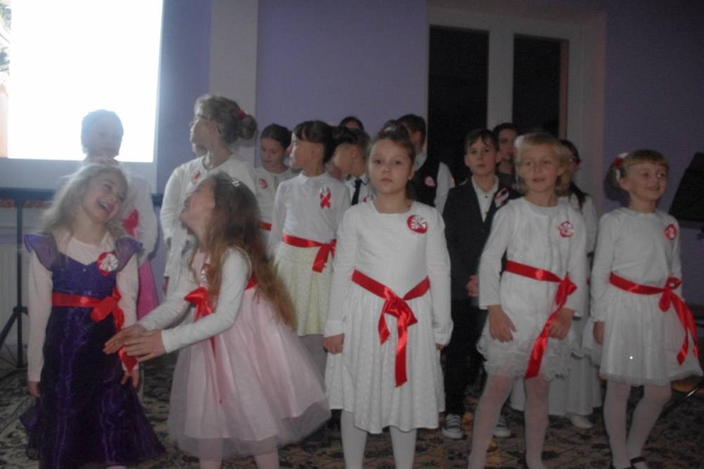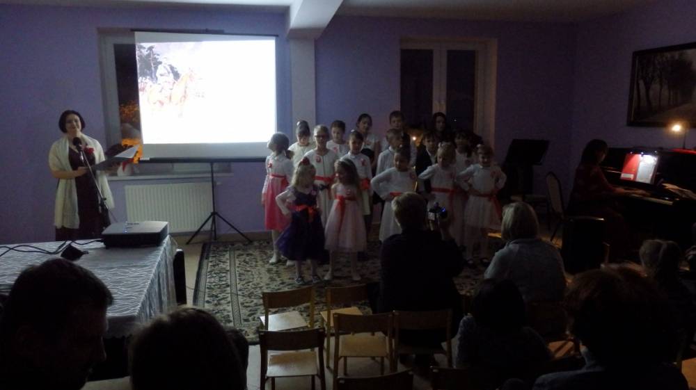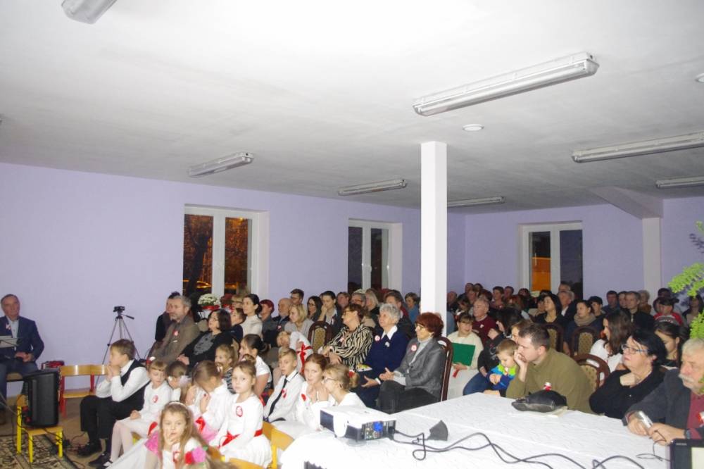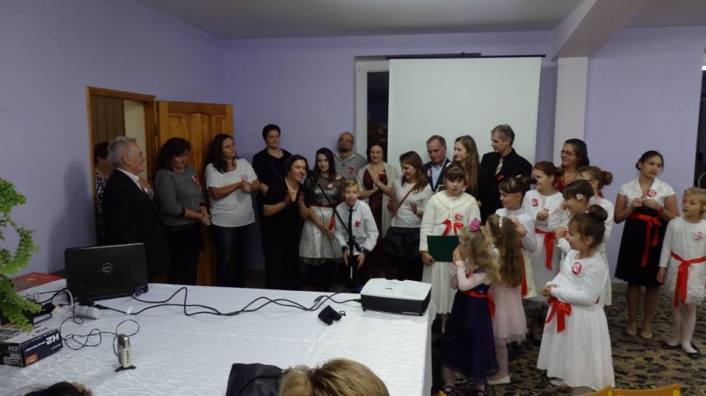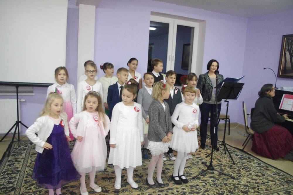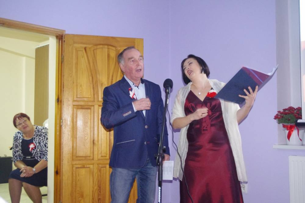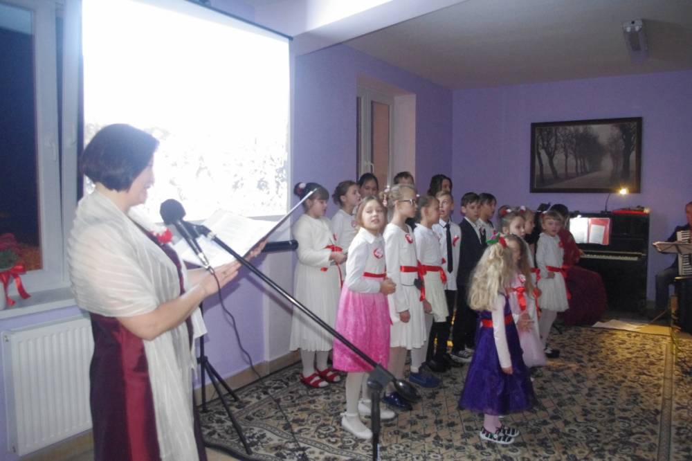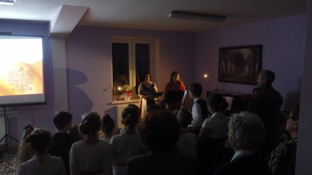 Wyjątkowe Święto Niepodległości, bo uświetnione koncertem pieśni patriotycznej w wykonaniu pani Teresy Tippe -Leszczyńskiej – solistki Warszawskiej Opery Kameralnej, muzykolożki, wyjątkowej znawczyni XIX- wiecznej muzyki, której towarzyszyli: Agata de Mezer – kompozytorka, autorka piosenek dla dzieci i nasza kochana nauczycielka oraz Apoloniusz Stawicki – muzyk, Prezes Stowarzyszenia Górna Jeziorka i człowiek zaangażowany społecznie, a także Rafał Leszczyński odpowiedzialny za obraz, a w zasadzie za obrazy – malarskie odbicie ówczesnej rzeczywistości i zespół „Micherki” – utworzony w naszej bibliotece. Dzięki nim odbyliśmy muzyczno-wizualną podróż po dziejach naszej Ojczyzny.