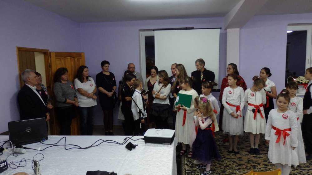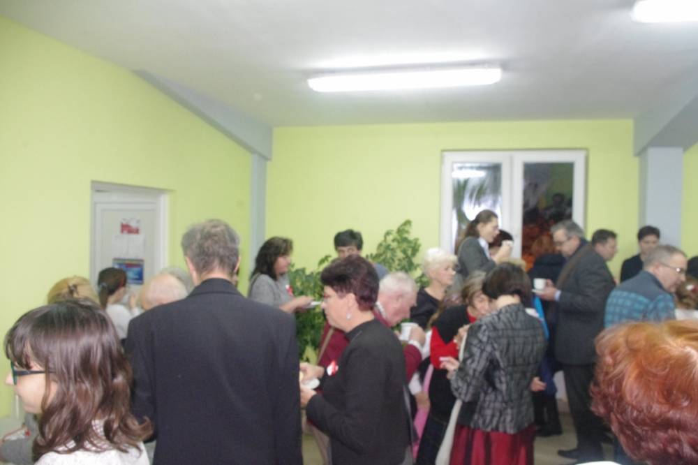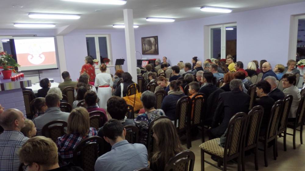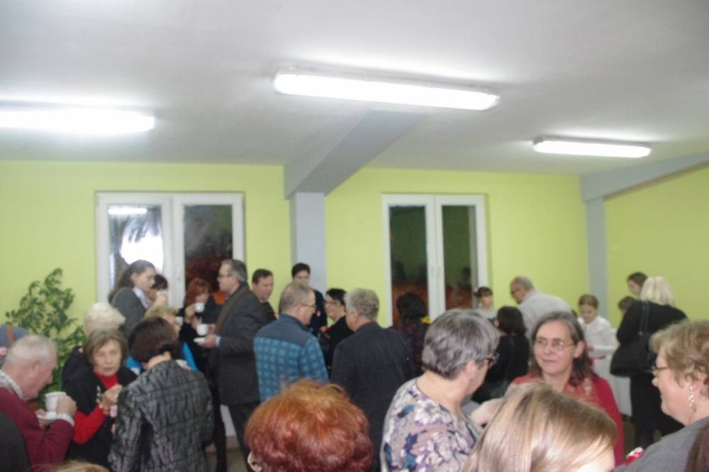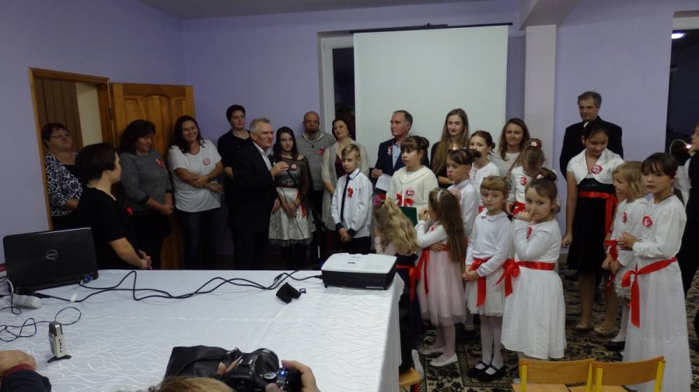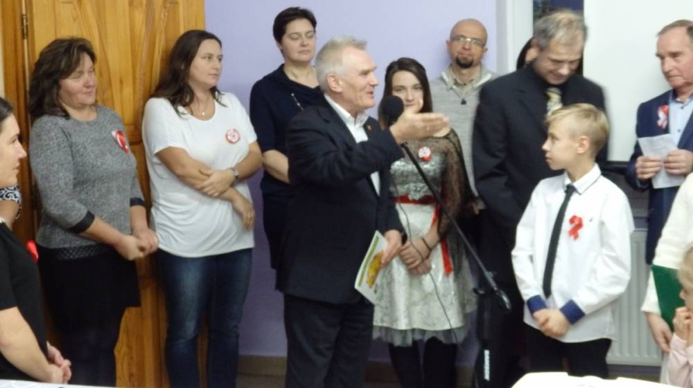 Złapałam oddech i mogę zdawać relacje, bo dzisiaj chyba jestem bardziej obiektywna niż w dniu święta, które było dla mnie bardzo wielkim przeżyciem i musiałam wszystko uporządkować w pamięci, wydobyć z niej szczegóły, które umknęły. Całe szczęście, że uroczystość została uwieczniona na zdjęciach, bo, patrząc na nie, wiem, że byliśmy prawdziwą wspólnotą, że za mało miejsc przygotowaliśmy i musieliśmy pożyczyć od sąsiadów krzesła, że parking okazał się za ciasny, że audio-wizualna lekcja historii przypadła do serc, że pieśni patriotyczne umiemy śpiewać wszyscy i czujemy z tego dumę, a także potrafimy słuchać i rozmawiać ( sami zobaczcie na zdjęcia z „salonu herbacianego”).